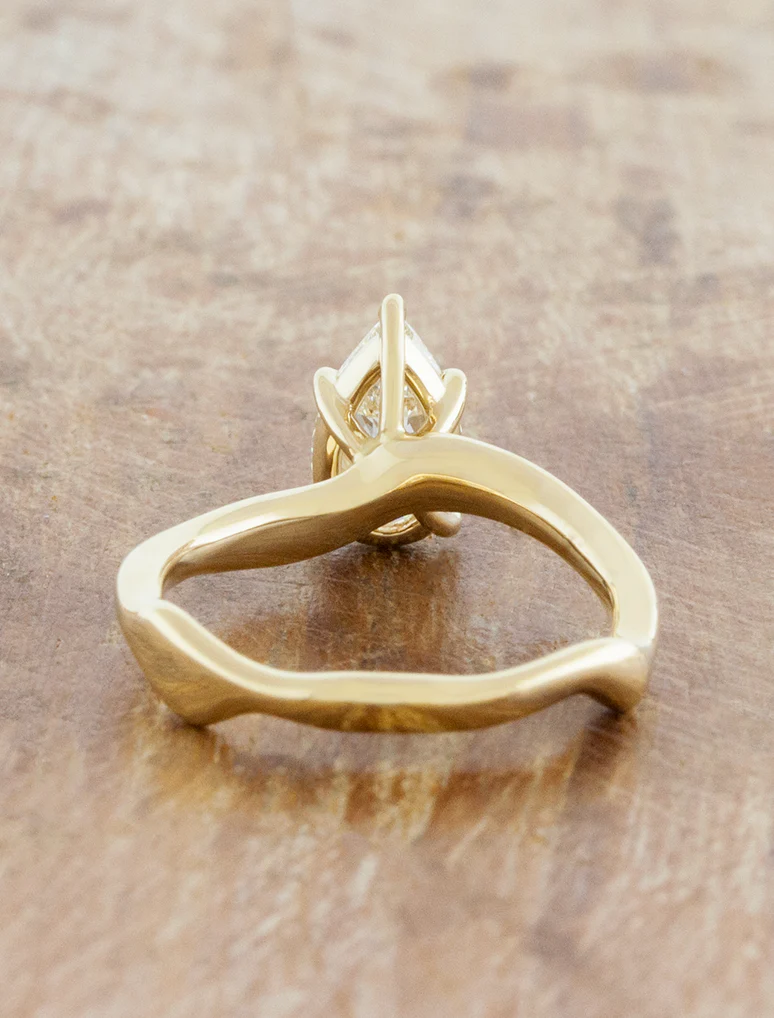 Introducing the Aurora - a sculptural solitaire engagement ring that reimagines the classic with an organic twist. Its wave-like band flows gracefully around a center stone, evoking natural movement and timeless elegance.