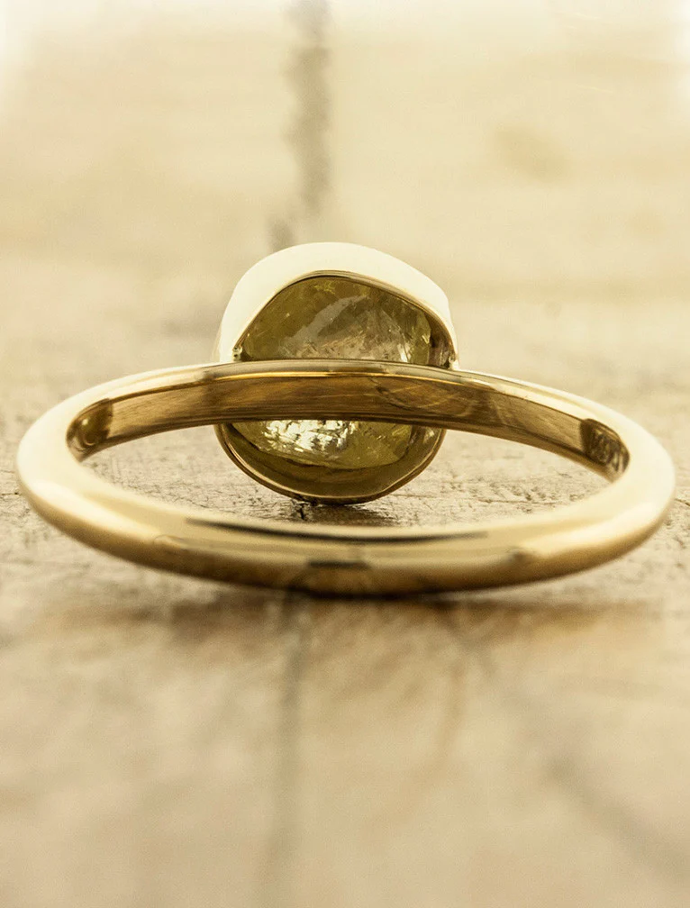 Inspired by a nature that is raw and real, yet elegant and classy, the Tallulah engagement ring is the perfect example of simple purity and chic. This piece was created in 14k gold and blends wonderously with a yellow diamond crystal center stone. The Tallulah is ideal for the woman who prefers an organic engagement ring with lots of sparkle!